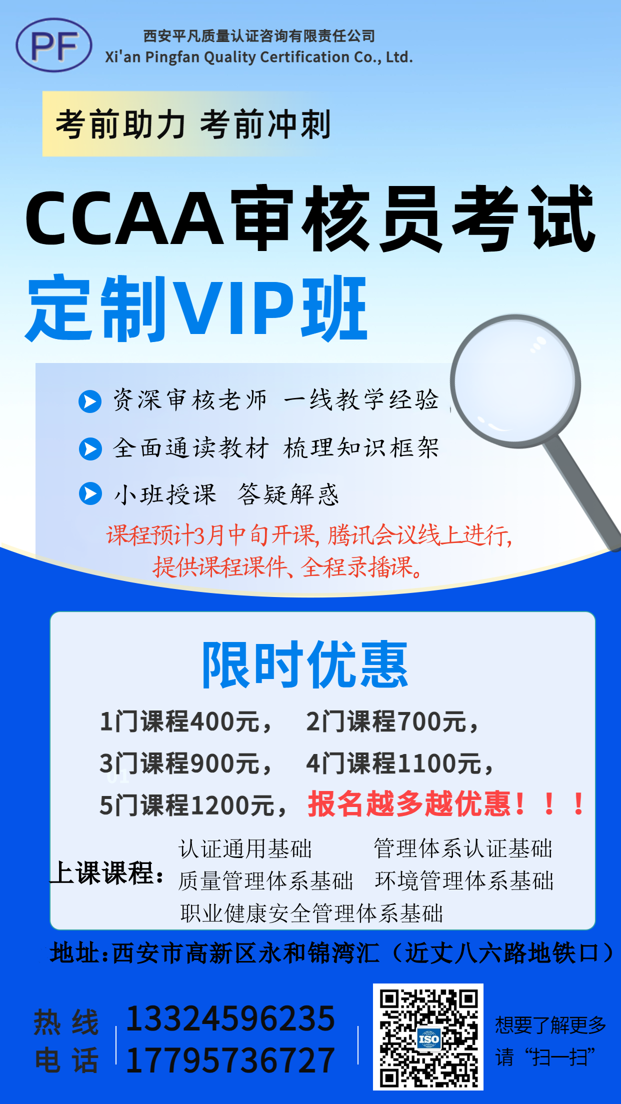 2026 丙午马年,职业进阶正当时!审核员证书作为体系审核领域官方认可核心资质,是进入认证机构、从事体系审核工作的必备凭证。西安平凡质量认证深耕体系审核领域10 年 +,依托专业教师团队与成熟教学体系,打造针对性 CCAA 审核员考试特训营,助力学员高效通关,持证就业。