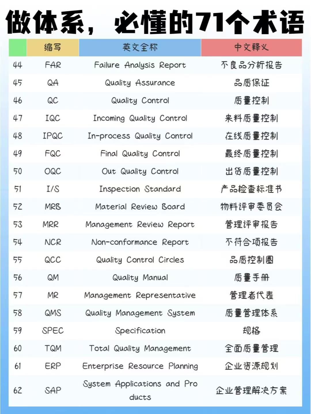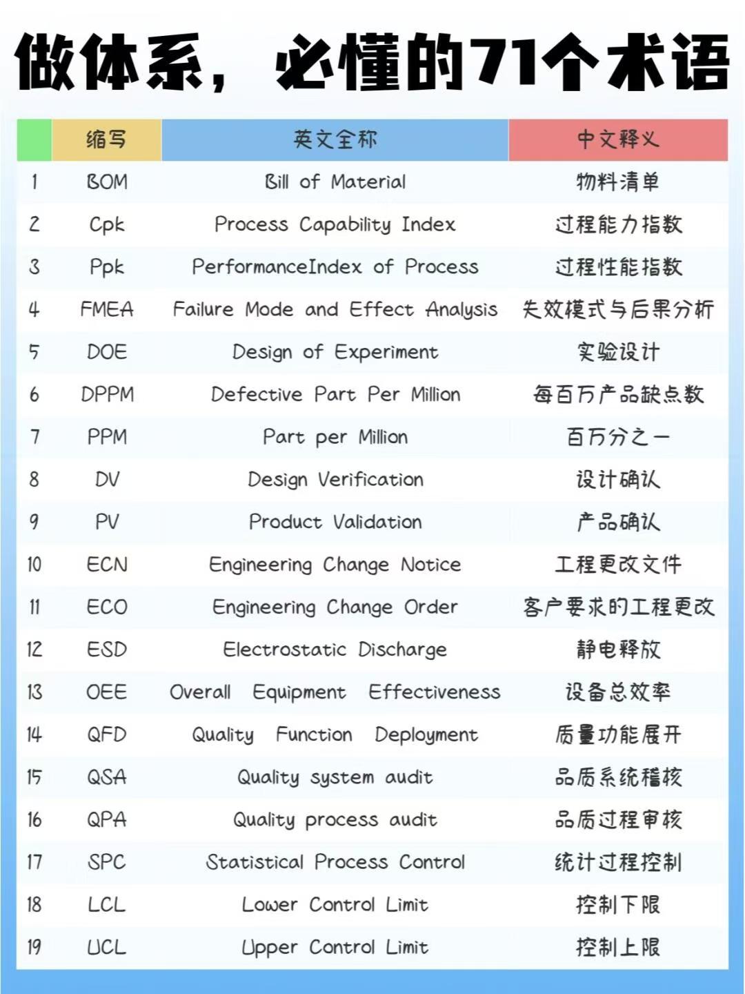 做体系,必懂的71个英文缩写术语