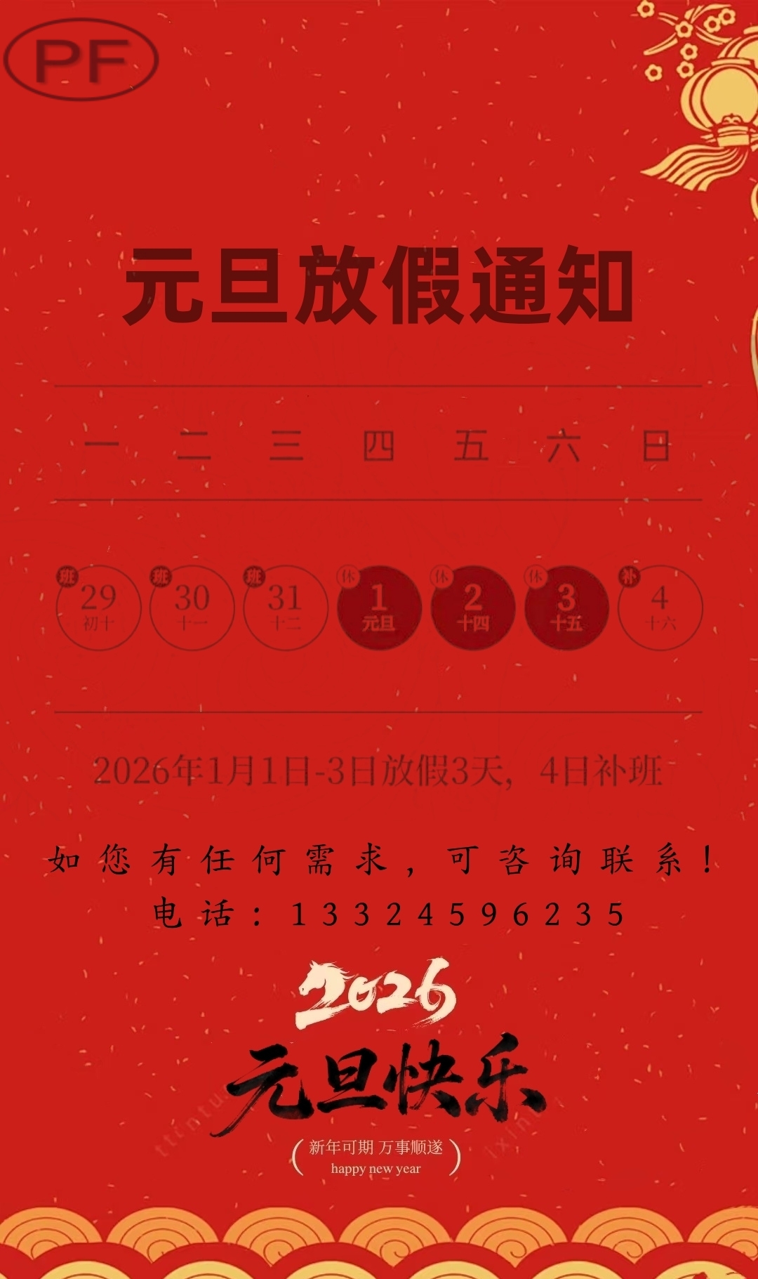 元旦放假通知