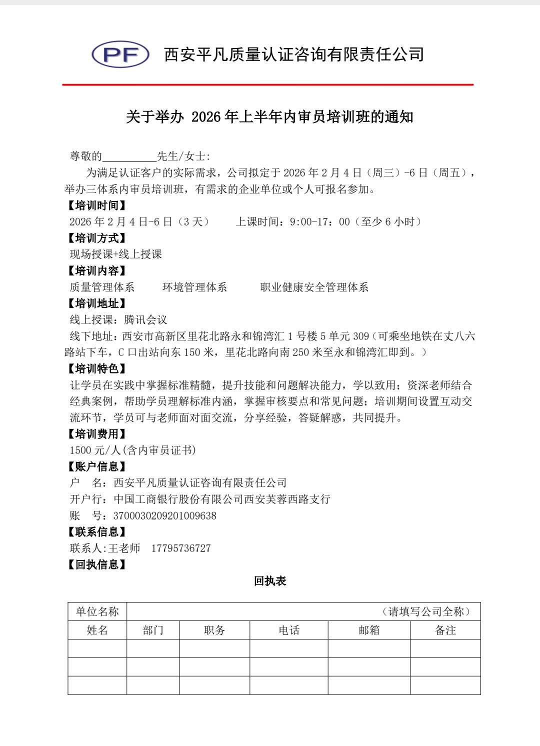 2026年三体系内审员培训班即将开课